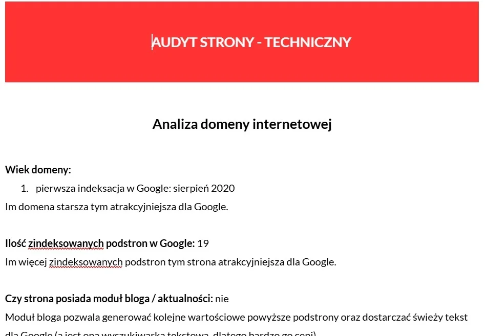 Wystartowaliśmy zatem z kompleksowym Audytem SEO ukierunkowanym na stworzenie nowej witryny www mającej docelowo służyć do pozyskiwania nowych zleceń z wyszukiwarki Google.