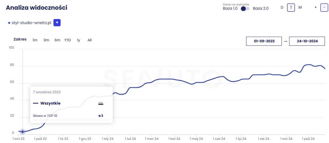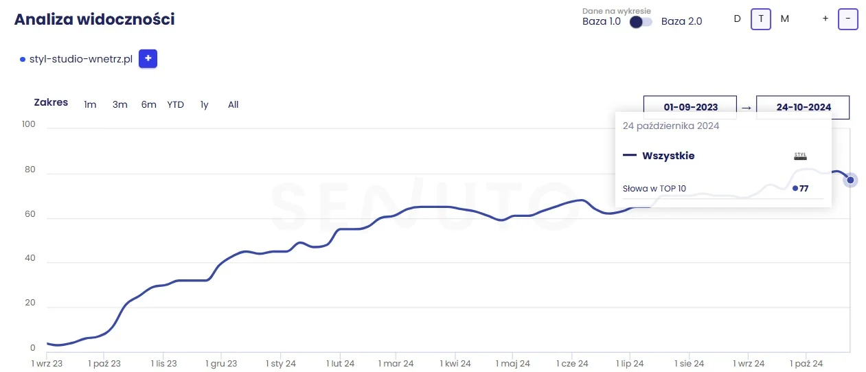 strona klienta wyświetla się w TOP 10 na 77 fraz kluczowych