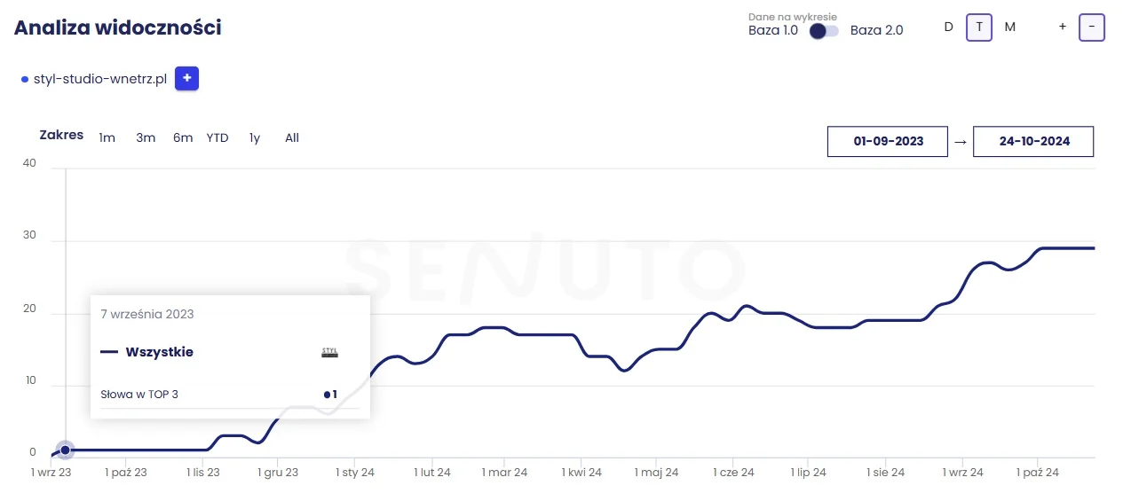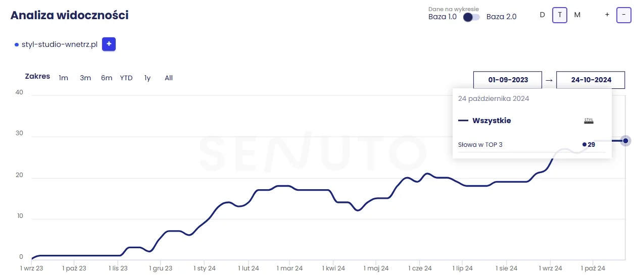 strona klienta wyświetla się w TOP 3 na 29 fraz kluczowych