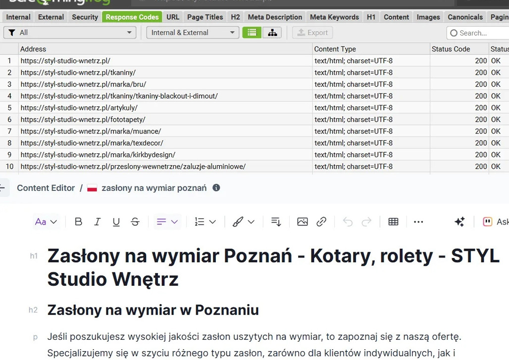 Aby zaprojektować strategię SEO, uwzględniając zarówno potrzeby marki Styl Studio, jak i wyznaczone cele biznesowe, rozpoczęliśmy od audytu fraz kluczowych.